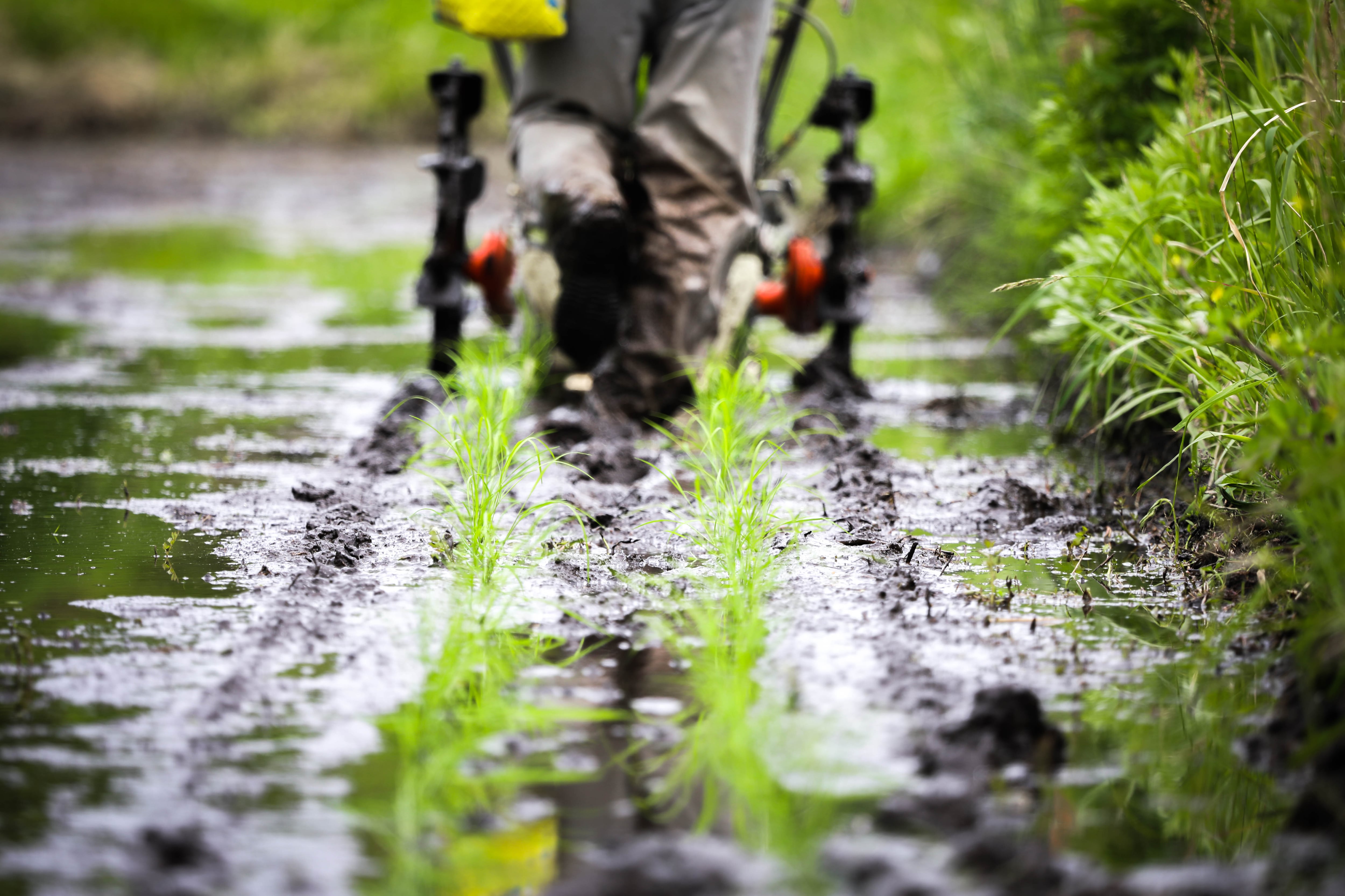 田んぼの水は白尾山からの湧水100パーセント!ミネラルウォーターで米作りをしています。